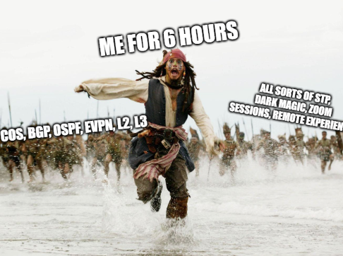 After quite some time I tried the next attempt of my JNCIE-ENT today – and I will never get used to these exams… Remote exams always stress me out: Will Zoom work? Will my provider be stable? Will the postman see the message I left at the front door (no, he ignored it) and not ring a thousand times to see if I’m home? Ah – such a lovely remote experience 😉 And the Blueprint for this exam is so… HUGE!