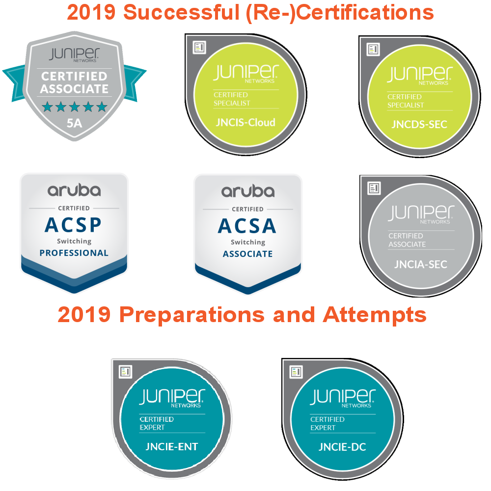 2019 was mostly a Re-Certify Year for me because I prepared for my 2 Expert Exams (JNCIE-DC and JNCIE-ENT) and also launched some amazing Projects regarding EVE-NG. I did both first attempts for the E-Exams in 2019 and I am certain, that I will be able to pass them in 2020.