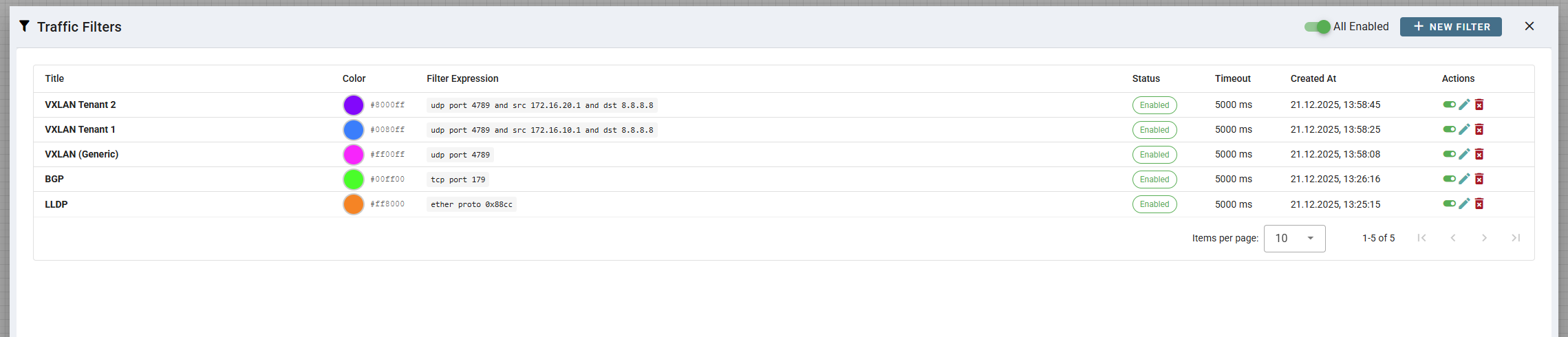 EVE-NG now offers live traffic filters directly in the UI. This means you can: